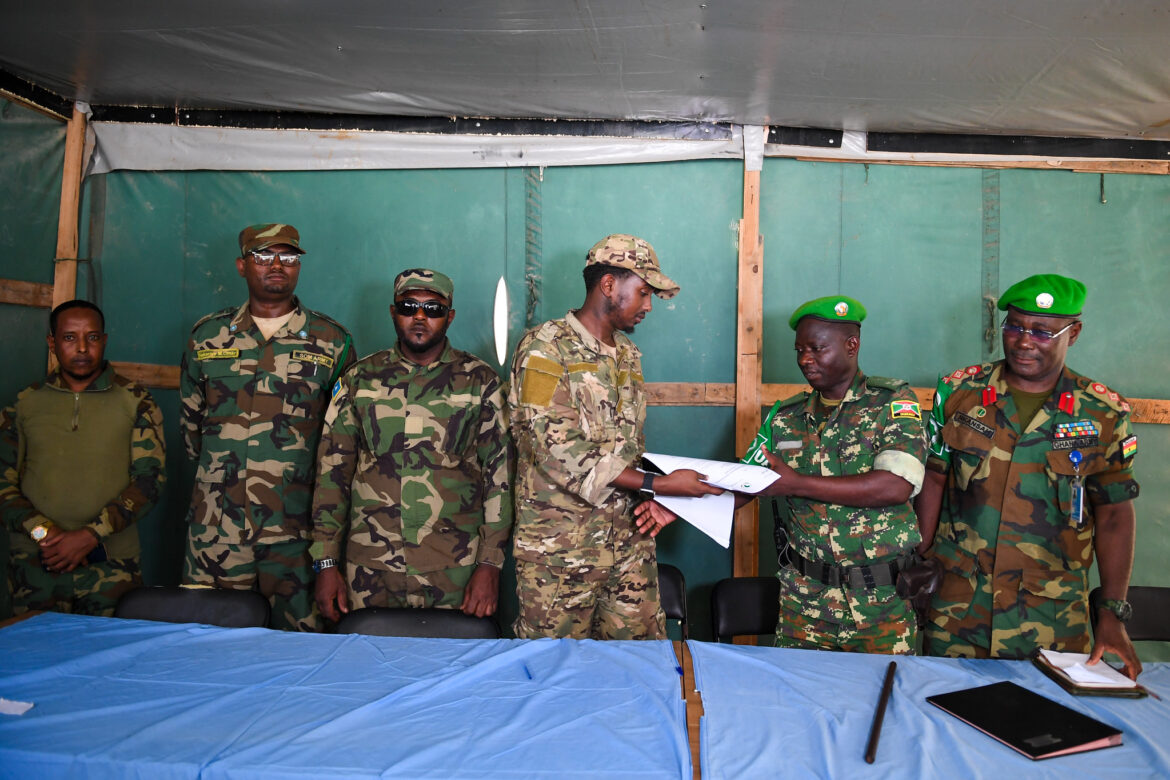 The handover documents symbolizing the transfer of security responsibility were signed by Lieutenant Harun Hassan, the new Somali Army Commander at the base, and Colonels Jean-Baptiste Nahishaki and Santosh Kuka of the Transition Planning Cell on behalf of Atmis and the United Nations Support Office in Somalia.